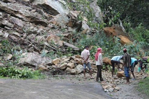 I have not brushed my teeth for three days, but why would i when i am in the middle of an earthquake? The journey from Darjeeling took an un-expected turn. Not so un-expected if you have read previous posts. The jeep started shaking but on reflection it was not the jeep but the earth, the cliffs, the Himalaya. Everyone was on the streets. Indian women in their night wear, masses of rock falling from above onto the roads, onto cars, onto people from the soaring mountains above our heads. Jeeps stopping and piling up.Nothing going anywhere fast apart from the bottle of rum down our throats. Darkness, ย headlights, people everywhere. Landslides, panic, fear; all perched on a thin piece of mountain road between falling boulders and a massive drop into the river to our right. The air was full of collective fear and uncertainty. Wether tourist or indian we were in the same position. We painted our nails and sang as a distraction from dread.